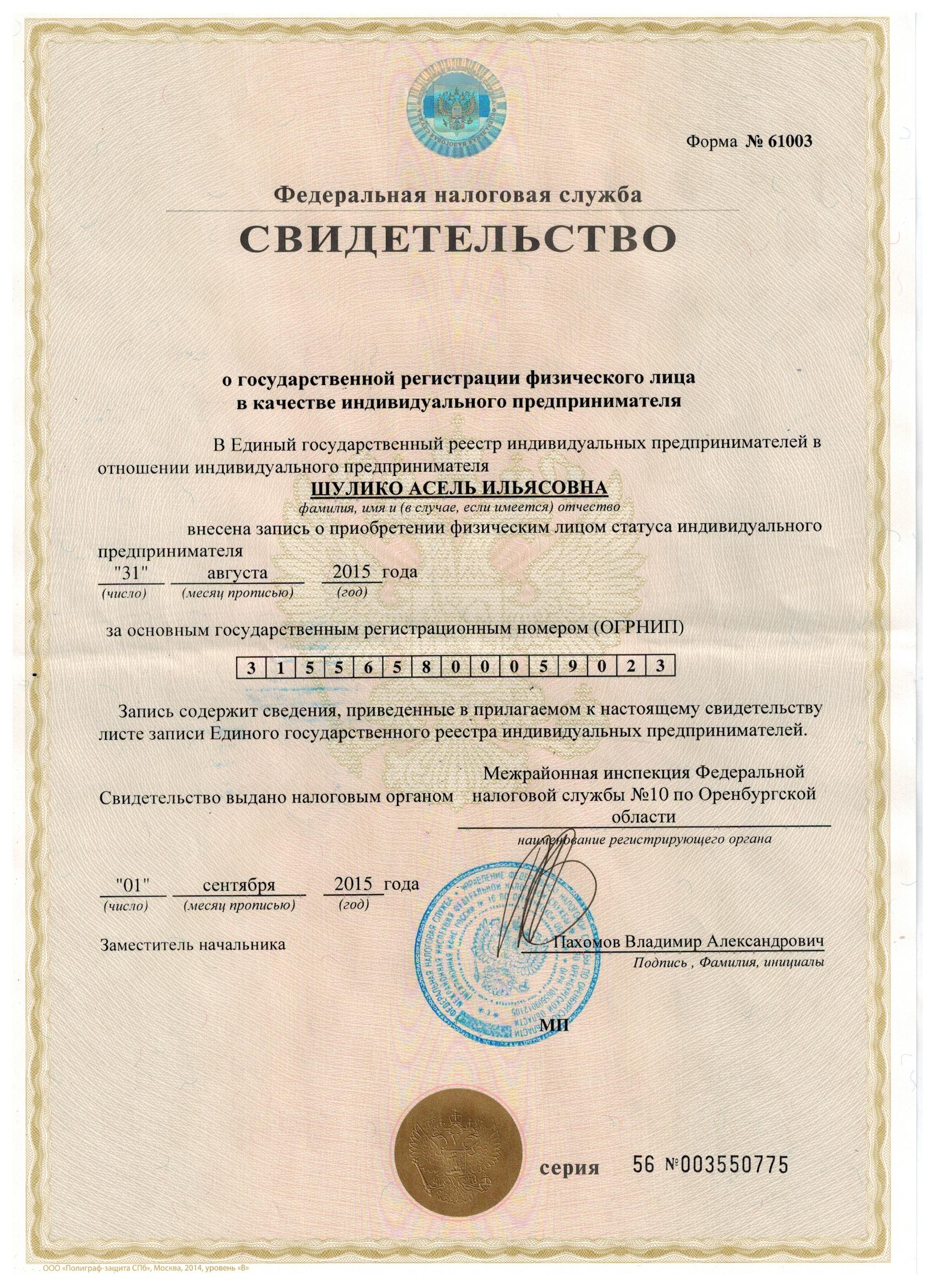 ОГРНИП 315565800059023